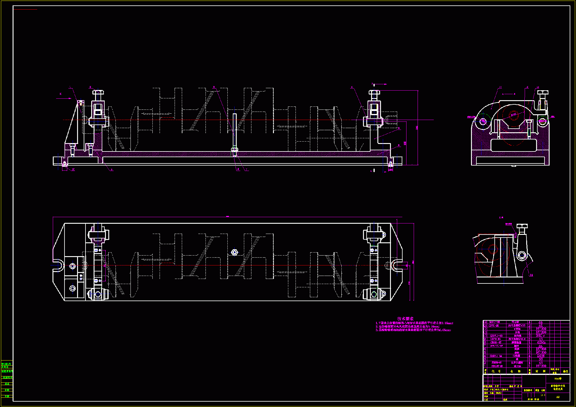 六冲程汽车发动机曲轴零件的工艺与夹具设计 摘 要 本课题是曲轴的加工工艺的分析与设计进行探讨。工艺路线的拟定是工艺规程制订中的关键阶段,是工艺规程制订的总体设计。所撰写的工艺路线合理与否,不但影响加工质量和生产率,而且影响到工人、设备、工艺装备及生产场地等的合理利用,从而影响生产成本。 所以,本次设计是在仔细分析曲轴零件加工技术要求及加工精度后,合理确定毛坯类型,经过查阅相关参考书、手册、图表、标准等技术资料,确定各工序的定位基准、机械加工余量、工序尺寸及公差,最终制定出曲轴零件的加工工序卡片。
