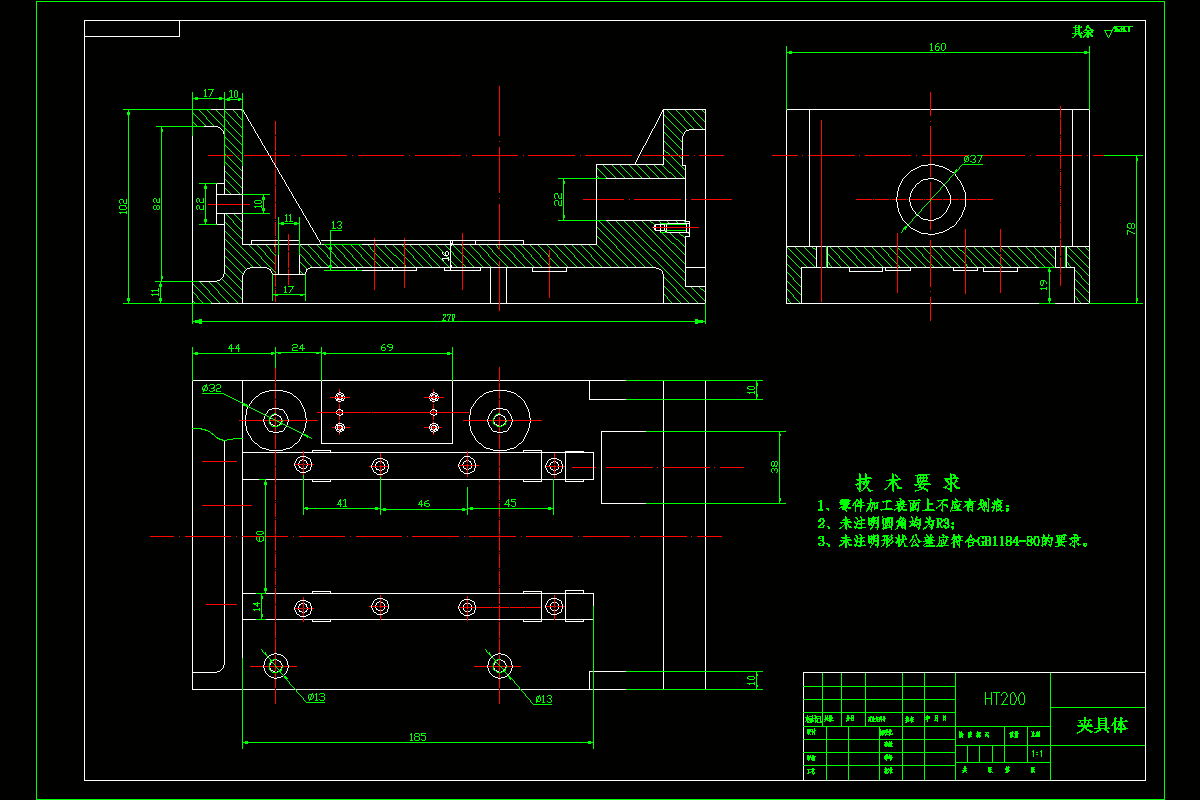 本课题来源于车床前刀架拖板零件的生产制造。本课题要求对车床前刀架拖板零件进行合理的工艺规程设计,包括零件每一道工序的选用设备、切削刀具、切削用量、定位方式等,并要求绘出工序图。另外要求对车床前刀架拖板工艺规程设计及翻转式钻摸进行夹具设计。其目的是把所学的机械制造工艺,金属切削原理及工艺装备设计基础知识与计算机辅助设计方法结合起来,加强理论知识并锻炼实践和动手的能力。为培养学生独立的分析问题和解决问题的能力打下良好的基础。 在课题的研究设计阶段,针对该零件的结构特点,制定加工工艺;深入理解了夹具的相关知识,结合零件的结构特点选择需要的夹具元件,设计出夹具的整体结构