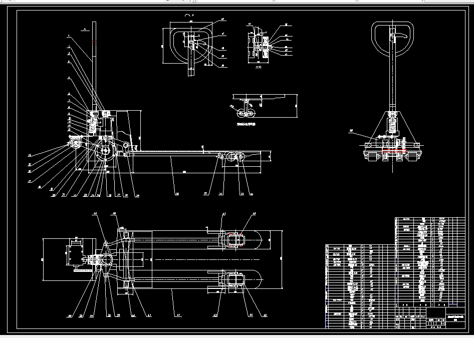 在搬运车的传动装置和起降装置的部分,功能的实用性和操作的便捷方面。具体设计内容为:先确定搬运车机械系统的整体方案,再对托盘、轴、起升机构、传动机构等关键零部件进行设计,并根据使用和工艺的要求确定具体参数,最后确定各个机构部件的尺寸和进行校核。该家具搬运车驱动轮为后轮并通过后轮转向,后轮通过链轮和减速器离合器连接控制小车的行走,液压机构主要是用于家具的搬运工作。