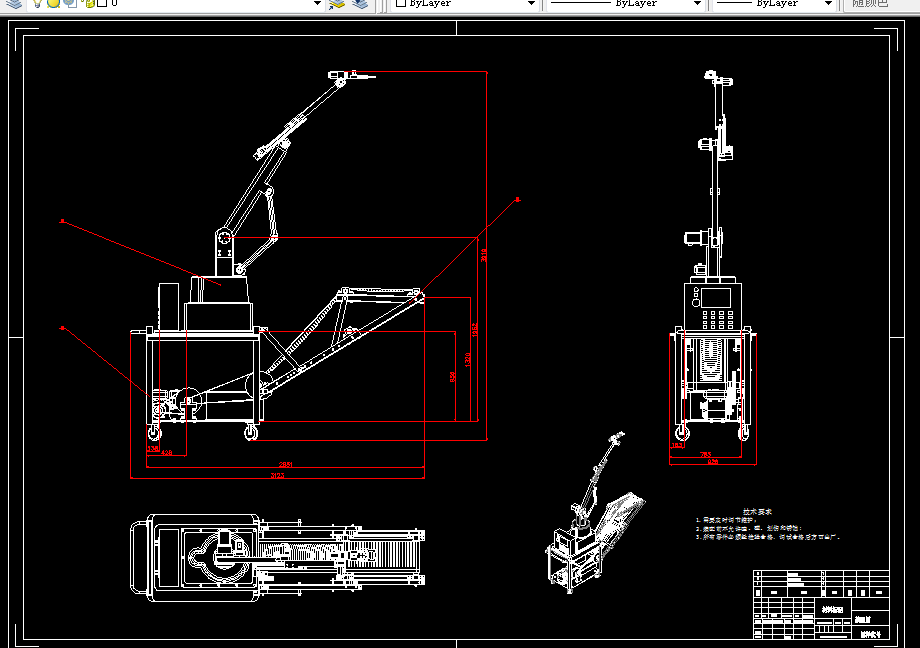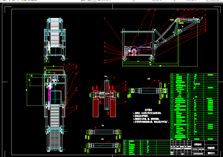 (6)运动CAD软件绘制核桃采摘机的整机装配图和相关零件图。