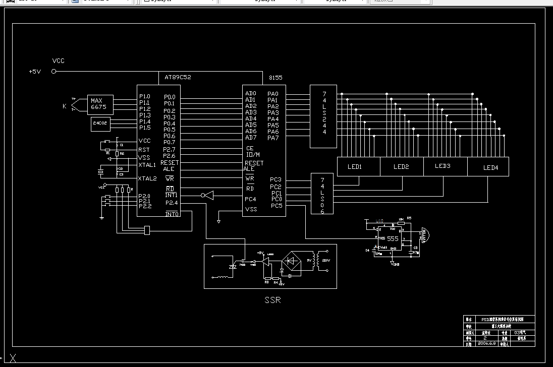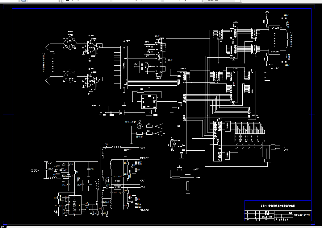 本文根据热电偶测温再经过放大器放大后把模拟量经A/D转换器转换成数字信号传送给单片机,数字量经单片机内部存储数据的比较再经过光电隔离再控制可控硅进行对温度的控制。本设计以8031单片机为主体的控制系统构成一个能进行较复杂的数据处理和复杂控制功能的智能控制器,使其既可与微机配合构成控制系统,又可作为一个独立的单片机控制系统,具有较高的灵活性和可靠性。单片机根据输入的各种命令,进行智能算法得到控制值,输出脉冲触发信号,通过过零触发电路驱动双向可控硅,从而加热电炉。