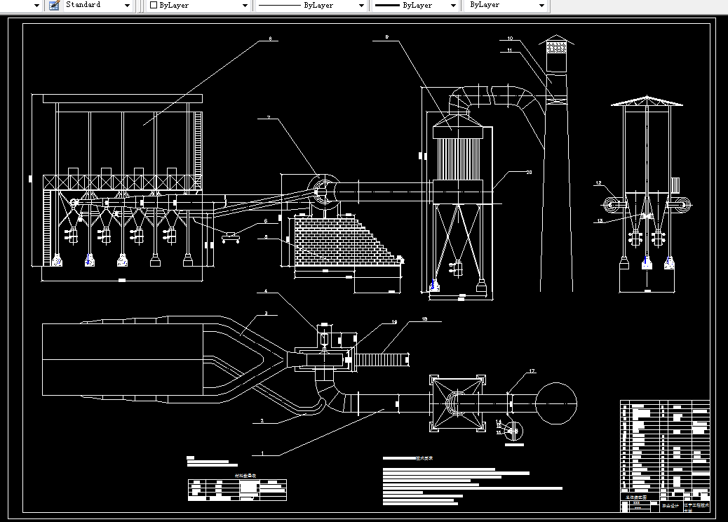 目前,国内外除尘设备的种类和型号较多,通过对它们的原理的分析以及性能的比较等,根据实际情况, 选出了对冶金炉废气控制的最佳方案。选用袋式除尘器并进行了设计计算确定了布袋的型号、尺寸、根数 ,对除尘器外部箱体、支架和灰斗等钢结构部件也进行了设计,并计算了其重量和面积和列出材料的数量表。然后对除尘系统 进行长效防腐设计,根据现场,合理对各个部件进行了布局。