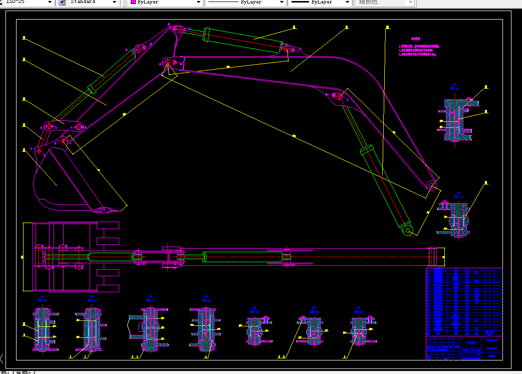 本次设计完成的主要任务有:挖掘机的类型及发展概况、液压挖掘机的总体设计液压挖掘机工作阻力的计算、液压挖掘机工作装置的设计、液压挖掘机工作装置的受力分析和强度校核、挖掘机工作装置液压系统的设计、挖掘机工作装置的运动仿真