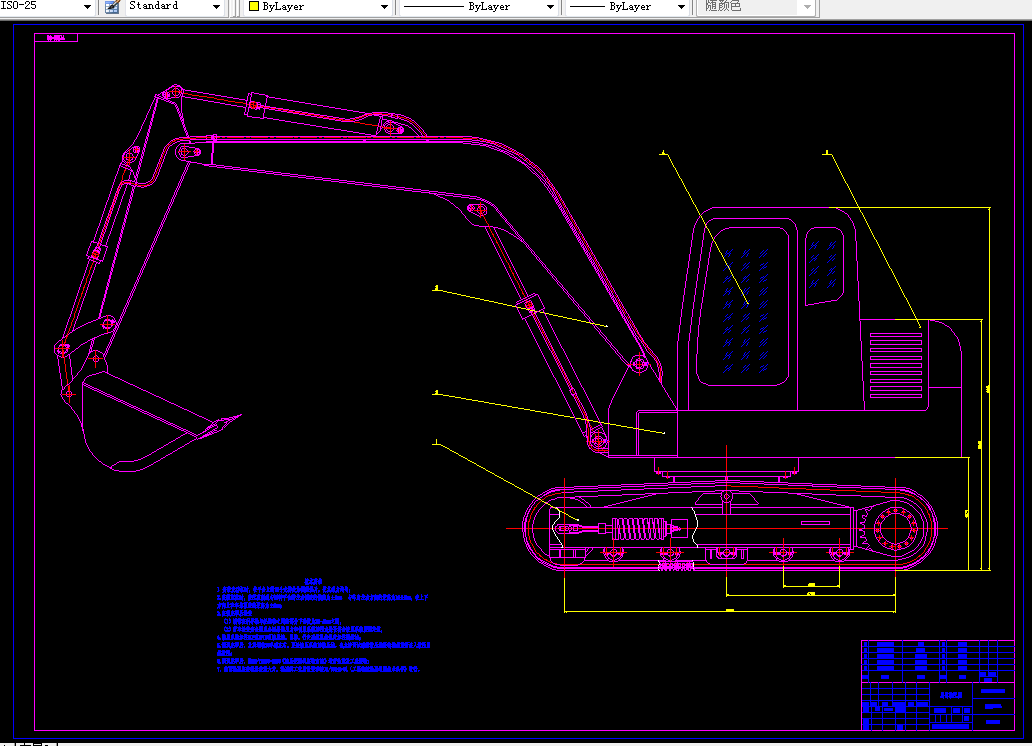 在设计中,采用了履带式行走装置,来满足要求。上部转台是全回转式,因此它可在一个更大的范围内工作。又因采用液压传动控制而使整机性能得以改善。与机械式挖掘机相比,其挖掘力提高到2~3倍,整机质量为25吨,最大卸载高度约为4.53m,最大挖掘深度5.99m,最大挖掘半径约为9.795m,从中可以看出整机作业能力有了很大的改进,不仅挖掘力大,且机器重量轻,传动平稳,作业效率高,结构紧凑。