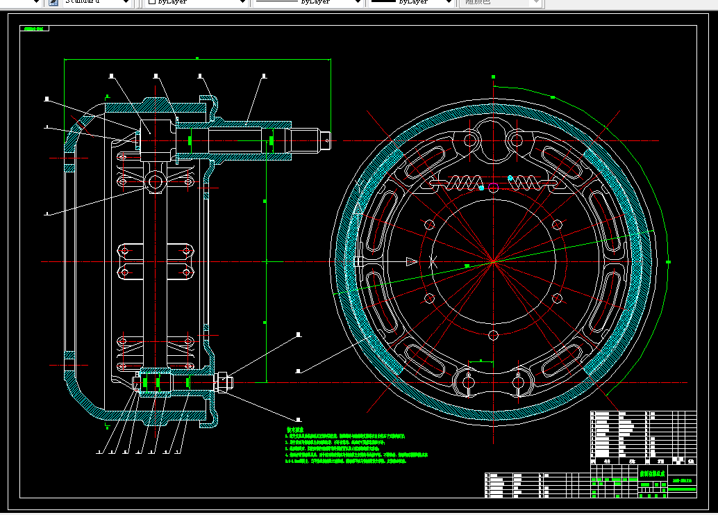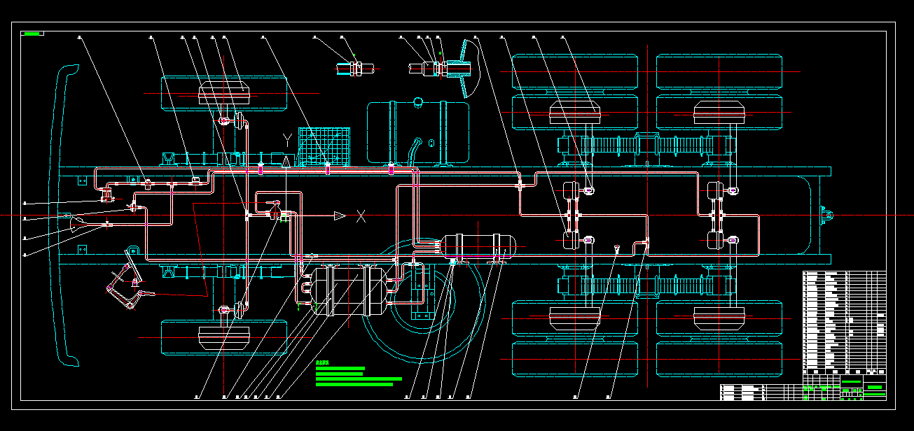 本次设计的制动系主要设计方案包含行车制动系统与驻车制动系统两套系统。结构形式方面选用凸轮驱动领从蹄式制动器。采用双回路气力驱动制动系统。前制动气室采用膜片式制动气室,后制动气室采用复合式制动气室。行车制动系统作用在前、后轮上。驻车制动系统为放气制动式,作用于中、后轮上,用手制动阀操纵。当行车制动失效时,驻车制动可做紧急制动用。