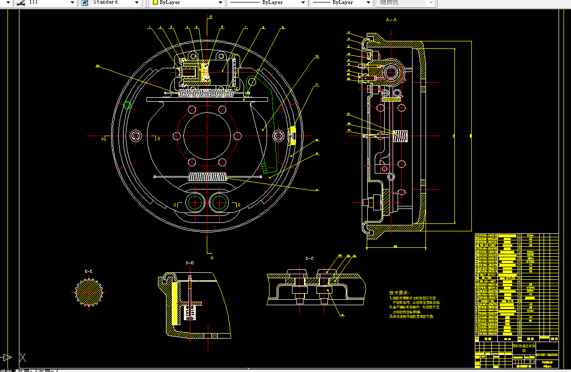 本设计对鼓式制动器的结构形式进行综合的分析,对六种形式的优缺点作了比较,根据对各种制动器方案对比分析,本设计采用了领从蹄式制动器。其主要优点是:制动器的效能及稳定性均处于中等水平,但由于其在汽车前进与倒退时的制动性能不变,且结构简单,造价较低,也便于附装驻车驱动机构;易于调整蹄片与制动鼓之间的间隙。本次设计中,行车制动系采用人力液压式制动;驻车制动的驱动机构为手动驻车;串联双腔制动主缸,双回路结构。前后制动器都采用领从蹄式鼓式制动器。设计中根据总体参数和制动器的结构与参数,通过理论推导和计算,对该车制动时的制动力和制动力矩等做了细致的分析。