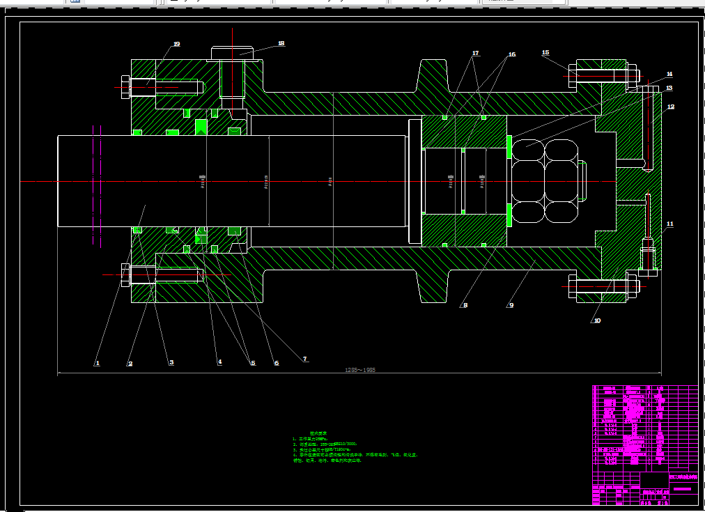 在机械系统设计中,首先确定整机为二梁四柱结构,依此为基础,根据工况分析,确定了液压的系统压力和安装方式,计算出主缸﹑顶出缸的内径尺寸﹑活塞杆的尺寸﹑缸盖以及导向套的尺寸。接着完成了对主缸和顶出缸的结构优化设计和各个零部件之间装配方式的选择。最后绘制了主缸和顶出缸的装配图和主要零件图。