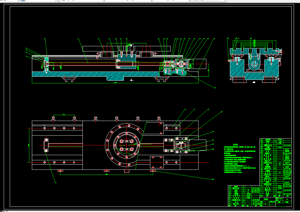 本文设计的主要内容为立式加工中心直线、回转工作台,该工作台承担运动功能为纵向(X)轴和横向(Y)两个方向的直线移动及一个绕(Z)轴的转动。主要设计内容包括:本设计首先做总体结构方案的拟定。确定工作台组成结构,方案拟定为纵向、横向两个方向移动的直线工作台,在纵向直线移动工作台的导轨上安装一个绕(Z)轴转动的回转工作台。其次主要部件概述。这一部分主要描述在工作台设计过程中主要设计的几个典型部件,如伺服进给系统、工作台、导轨,陈述选用这几个部件的原因和对它们的基本要求。第三部分是结构力学的设计计算也是本设计的主要部分。 结合给定的主要参数对伺服进给系统和回转工作台进行选择计算并校核,得到必需的几何参数,基本确定工作台的结构尺寸。第四部分为工作台装配图与零件图的绘制。图纸可以清楚地表示工作台及其组成部分的连接、装配关系和主要零件结构、大小及技术要求。