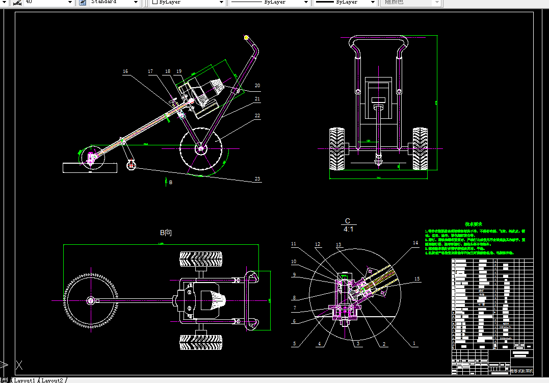 摘 要:割草机是农、牧、园艺和园林等行业必备的一种常用机械,但适合面积狭小、形状不规则或地形复杂的地段且操作使用便捷、灵活的小型推移式割草机却很少见。为此,在研究我国广泛应用的一些割草机技术的基础上,设计了简单实用的推移式割草机,其特点是结构简单、轻便、工作头前伸和支架高度可调;本文介绍了,推移式割草机的总体结构、工作原理、电机选择及传动比的计算相关机构的校核。实验结果表明,该机具有操作容易、使用和携带方便、转向灵活等特点,能有效降低劳动强度。