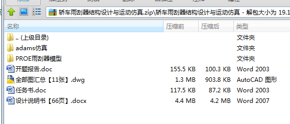 本设计要求进行轿车雨刮器部件尺寸的设计,求解刮扫面积,电机选型,电路分析,利用ADAMS软件进行运动分析,获得运动的轨迹和速度,并用Pro/E绘出三维模型。