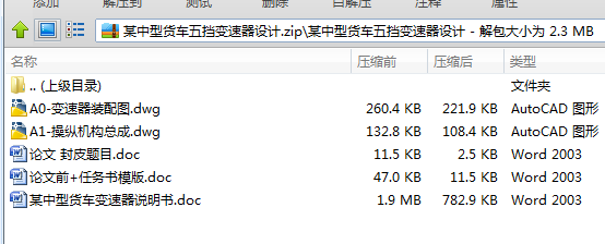 本文阐述了发动机的选择、变速器方案的确定、变速器设计、变速器同步器设计、变速器箱体设计。在给定中型货车发动机输出转矩、转速及最高车速、最大爬坡度等条件下,着重对变速器齿轮的结构参数、轴的结构尺寸等进行设计计算。