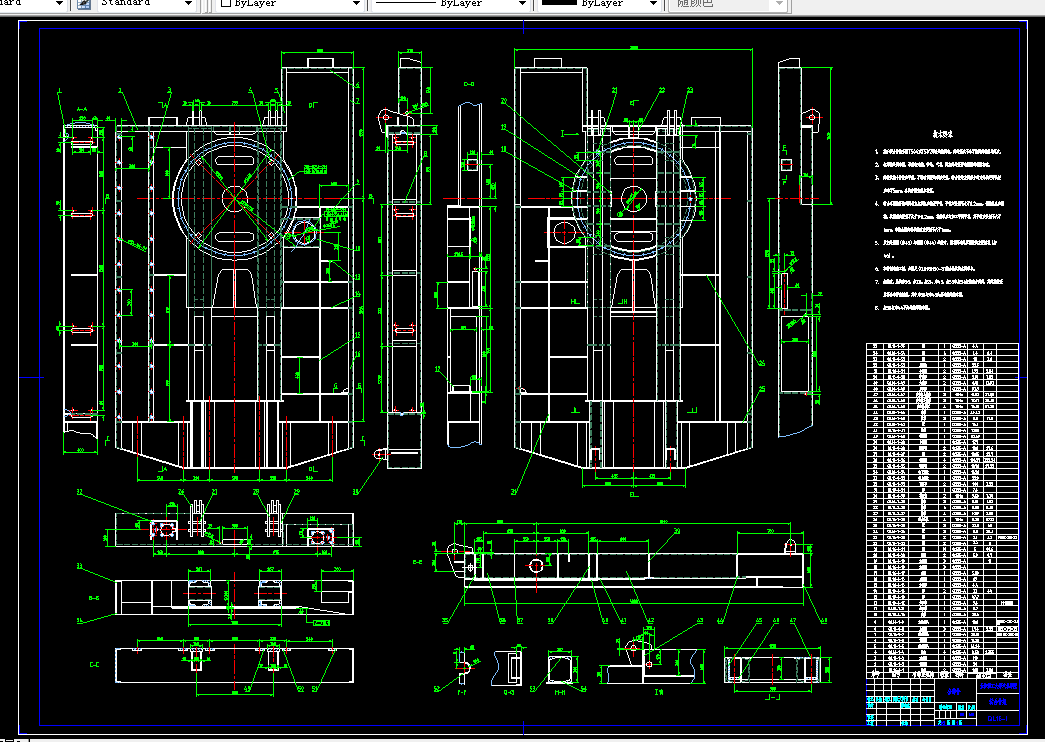 转台受载状况和结构型式复杂,难以用传统的计算方法进行强度和刚度计算。转台主要用来布置起升机构、回转机构、起重臂及变幅油缸的下支点和操纵装置。对于中、大吨位的起重机,有的还在转台上安置发动机。转台与底架之间用能承受垂直载荷、水平载荷及倾覆力矩的回转支承联接。为了防止在行驶时转台发生滑转,设有转台锁定装置。