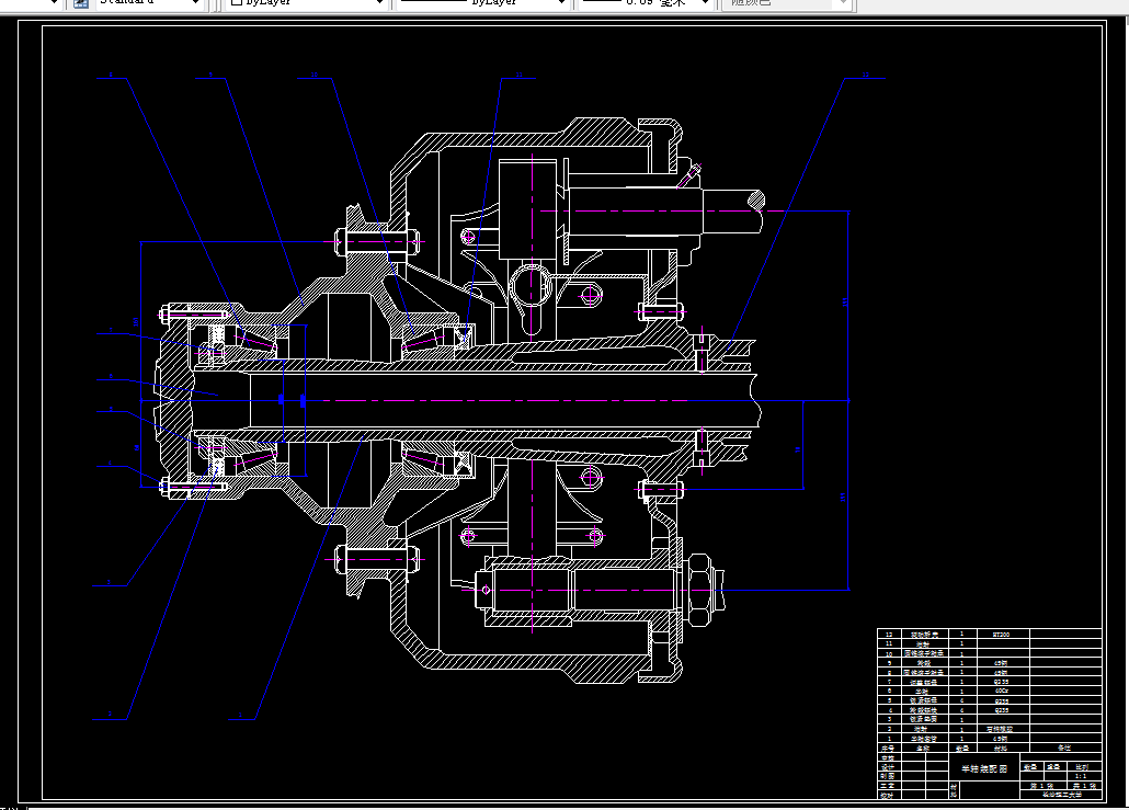 为了课题研究的需要,进行了汽车驱动桥的拆装实验。熟悉驱动桥的零件如主减速器、差速器、行星齿轮和驱动桥壳等的结构、尺寸,掌握它们的工作原理;查阅资料书来决定高速汽车底盘驱动桥的主要尺寸的选定和工作方式的选取。通过绘制草图和计算来验证所取数据是否适合,从而使设计满足要求。