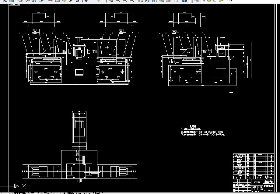 摘 要:柴油机机体为大批量生产的零件,为了提高产品的加工效率和加工精度,本课题设计了一台R180柴油机机体三面精镗组合机床。该机床设计主要分为总体设计和部件设计两部分。在全面了解被加工零件的结构特点、加工部位和技术要求等基础上。主要完成了组合机床的总体设计。具体内容是在确定总体方案的基础上,绘制出三图(被加工零件工序图,机床联系尺寸图,加工示意图)和生产率计算卡。本课题的重点是对右主轴箱的部件设计,首先,在完成组合机床总体设计的基础上,主要完成拟订了主轴箱的传动路线;然后,根据绘制出的主轴箱原始依据图,确定了具体传动方案,应用最优化方法布置齿轮,确定传动参数,设计了轴的结构;最后,进行齿轮、轴承等相关零件的强度校核计算。在满足加工精度的条件下,本方案采用液压滑台来实现进给运动,尽量使用了通用部件,降低制造成本。采用单工位三面同时加工能保证孔的位置精度,提高生产效率,降低工人劳动强度,较好地满足了设计要求。