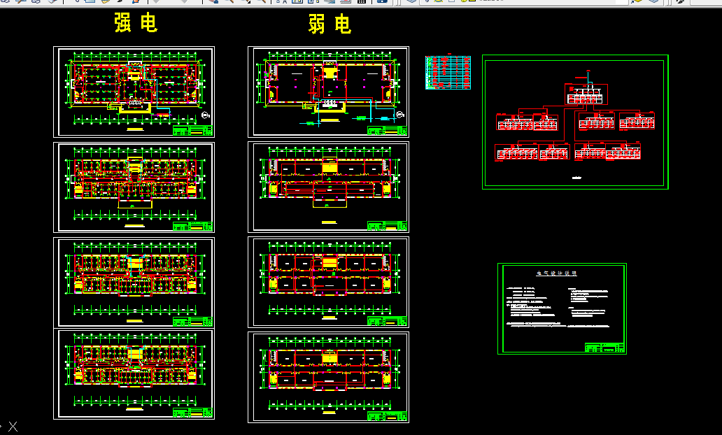 最后,利用AUTOCAD及天正电气软件,根据提供的土建施工平面图,画出电气工程图、配电系统图和弱电图。