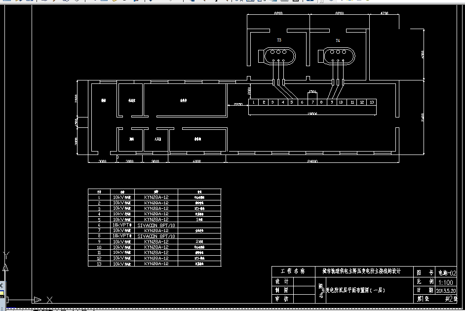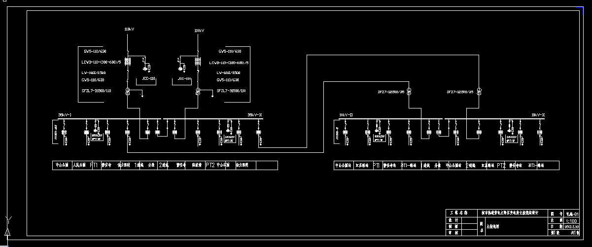 首先,本文研究了主变电所主接线的选择问题,按照主变电所主接线的行业共识分别提出了高压侧和中压侧的主接线设计方案,通过对比分析,在满足可靠性、灵活性和经济性的要求下确定了主接线的设计方案。其次,根据主变电所的容量要求和变压器的发展,完成变压器台数和型号的选择。接着,将电力系统原始网络图用标幺值法转换,画出其等值电路图,并且按照方便电气设备选择和校验的原则选择短路点,进行短路容量的计算。最后,根据短路电流的计算结果和我国电气设备的发展情况,进行电气设备的选择。根据主接线确定的方案和电气设备的选择结果,利用CAD软件画出主接线图,按照国标规定、电气设备的尺寸和主变电所实际情况进行电气设备的布置,画出了平面布置图和断面图。