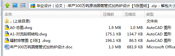 本设计为年产300万吨原油圆筒管式加热炉,在本设计中主要完成对辐射段、对流段以及烟道的工艺尺寸的计算、热量的衡算、钢结构的计算及校核和加热炉各零部件的选用。其中辐射室工艺尺寸包括辐射室炉管的直径、炉管的壁厚、炉管的长度、炉管的根数、辐射室的外形尺寸等;对流室的工艺尺寸包括对流炉管的形式、炉管的直径、炉管的壁厚、炉管的排数及每排的根数、热量衡算的部分包括计算燃料量、燃烧器的规格和根数。