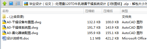 本课题为处理量120T/D牛乳喷雾干燥系统。采用的是并流喷嘴雾化式干燥装置。通过物料衡算和热量,确定操作参数和干燥器的结构参数。此设计采用了压力式喷嘴。通过喷嘴结构及进料量计算干燥器的直径。另外,通过通风量计算塔径。综合两者确定塔径。塔高的确定采用干燥强度法估算,然后应用高度和直径比进行核算,除尘装置采用的是旋风分离器和袋滤器。在实际价值方面,在保持一定的操作弹性和适当的压力降的前提下,更加合理的设计干燥塔的结构和附属装置的结构,以提高喷雾干燥系统的效率和产率,达到更加节能的目的。喷雾干燥是使液态的物料经过喷雾进入热的干燥介质中转变成干粉料。它是包括干燥在内的颗粒物料一次连续处理过程。进料可以是溶液、悬浮液和糊状物。制成的干料呈粉状、颗粒或聚结成团块。喷雾干燥操作在许多工业中能满足干料质量指标的要求,产品便于作进一步加工或直接供消费者使用。经过近几十年的深入研究和发展,喷雾干燥已成为能干燥许多品种的产品、竞争能力很强的干燥方法。
