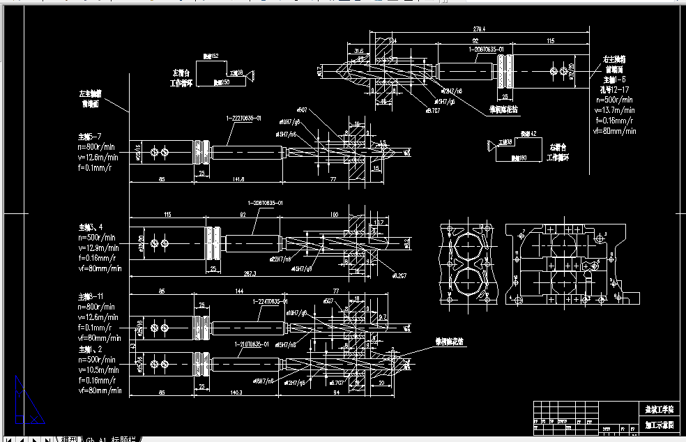 摘要:柴油机汽缸体为大批量生产的零件,为了提高生产效率,满足被加工零件的精度要求及保证加工精度的稳定性,本课题设计了一台用于双缸柴油机汽缸体双面钻孔的组合机床。本文介绍了该组合机床总体设计和夹具设计的思路与内容。第一部分是总体设计,首先,进行了总体方案论证,采用单工位双面钻削组合机床,刀具选用高速钢麻花钻,并根据切削用量的选择,计算切削力、切削扭矩及切削功率,确定主轴直径、外伸尺寸、接杆型号,选择滑台、动力箱等通用部件,再确定动力部件的工作循环及工作行程,完成机床联系尺寸的制定。最后绘制了三图一卡。第二部分是夹具设计,经过对被加工零件的全面分析,定位方案采用三面定位,导向采用固定钻模板可换钻套导向,夹紧装置采用液压夹紧机构,直接夹压于工件上,反应快捷,夹压平稳可靠,夹具体为框架式结构,有良好的刚性,使夹具能长期保持可靠的精度和稳定性。该组合机床不仅能保证钻孔精度,还能提高加工效率,降低工人的劳动强度。设计的夹具定位可靠、夹压稳定、操作方便,达到了设计要求。