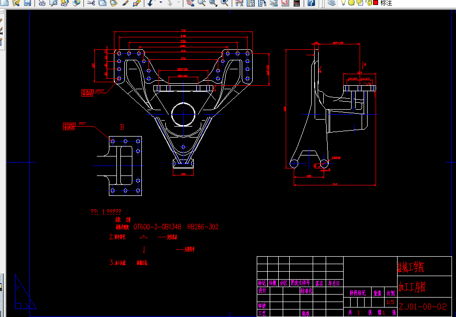 摘要:“Y”型支架双面钻孔组合机床加工的是支架零件。主要钻削加工支架上的18-φ17和8-φ17孔。该零件形状独特,因此对工件的定位和夹紧比较困难。本设计任务是在完成组合机床总体设计的基础上,完成前主轴箱的设计。首先分析了所要加工工件的特点,进行了组合机床的总体设计,绘制了被加工零件的工序图、加工示意图、机床联系尺寸图和生产率计算卡,在此基础上,进行了前主轴箱的设计。主要绘制了前主轴箱设计的原始依据图,拟订了主轴箱的传动路线等,然后绘制了主轴箱的装配图和一些零件图,校核了轴、齿轮等零件。设计过程中尽量使用了标准零部件,设计出的组合机床机构简单,操作方便,加工精度高,减轻了劳动强度,提高了加工效率,具有较好的经济性。