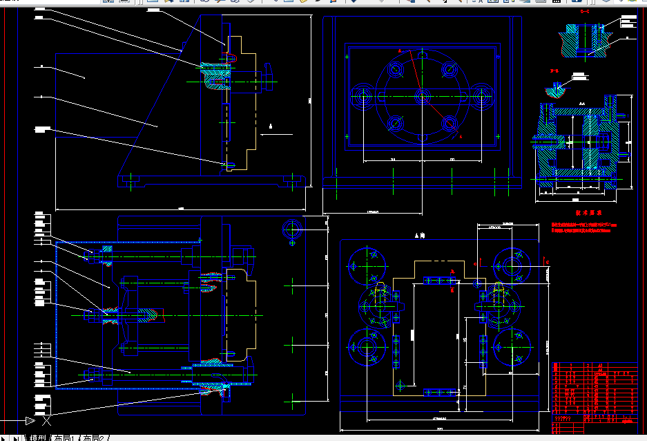 (3)、组合机床部件设计 包括专用多轴箱的设计,传动布局合理,轴与齿轮之间不发生干涉,保证传动的平稳性和精确性。专用主轴设计、轴承的选用及电机的选择等。