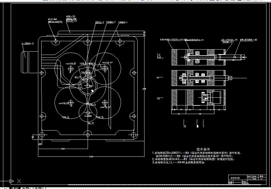 该组合机床由立柱、立柱底座、中间底座、液压滑台、动力箱、多轴箱等组成。本文对各部分的设计进行了详细的计算和论证。