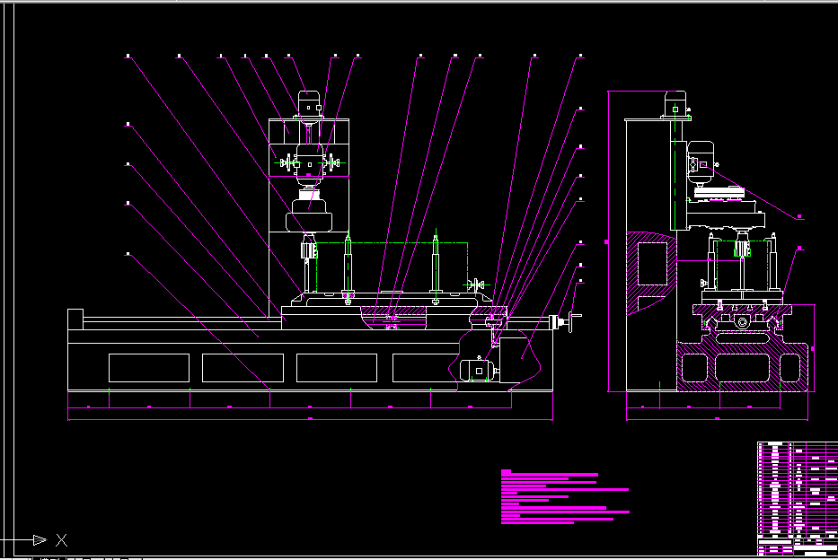 金属切削机床是机械制造装备中最具代表性的产品,在国民生产中占据十分重要的位置。本次设计说明书主要设计了铣床的结构,其中减速器设计从电动机的功率确定到最大,最小转速参数的设计,到标准公比的选用和转速的确定,齿数,齿轮的确定等都严格按照要求设计。通过查阅了多种设计资料确定了主传动系统结构,各轴直径的计算和它们的刚度,强度的校核,齿轮的齿数,模数和带轮的设计,从而确定了主轴箱的大体结构,从而绘制出各视图和零件图。最后结合各部分的设计设计出铣床的总体图形,完成碳块专用铣床的全部设计。