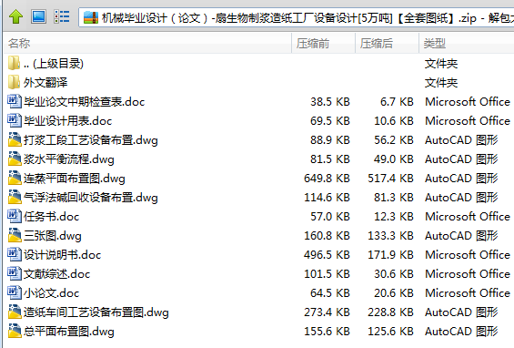 本设计的主要内容包括制浆设备的平衡计算与设备选型、车间设备布置设计和各辅助专业的设计,并绘制生产流程图、车间平面布置图以及立面图,并为配套专业提供设计要求和相关资料。