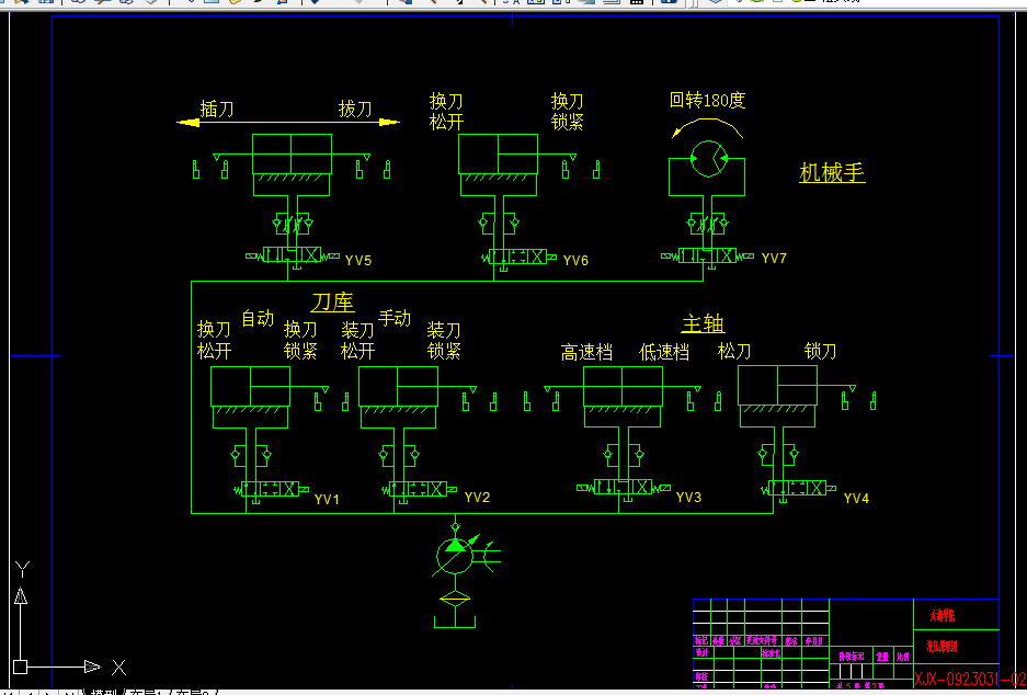 数控机床的自动换刀装置中,实现刀库与机床主轴之间传递和装卸刀具的装置称为刀具交换装置。两手互相垂直的回转式单臂双手机械手的优点是换刀动作可靠,换刀时间短,缺点是刀柄精度要求高,结构复杂,联机调整的相关精度要求高,机械手离加工区较近。一般来说,这种机械手与刀库刀座轴线与机床主轴轴线垂直,刀库为径向存取刀具形式的自动换刀机构,因此,在XKA5032A/C数控立式升降铣床的自动换刀机构中可采用这种机械手形式。