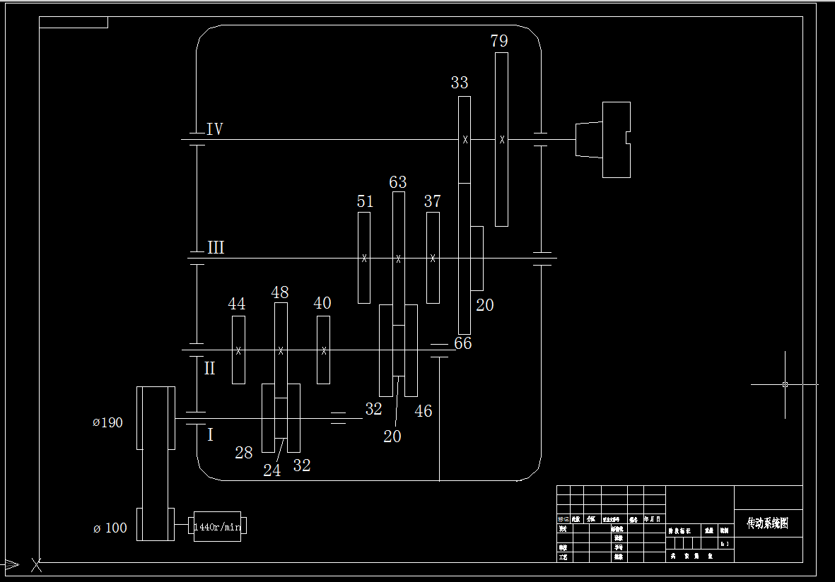 本设计着重研究机床主传动系统的设计步骤和设计方法,根据已确定的运动参数以变速箱展开图的总中心距最小为目标,拟定变速系统的变速方案,以获得最优方案以及较高的设计效率。在机床主传动系统中,为减少齿轮数目,简化结构,缩短轴向尺寸,用齿轮齿数的设计方法是试算,凑算法,计算麻烦且不易找出合理的设计方案。本文通过对主传动系统中滑移齿轮传动特点的分析与研究,绘制零件工作图与主轴箱展开图及剖视图。
