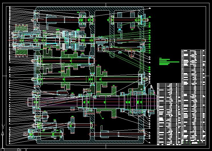 本设计着重研究机床主传动系统的设计步骤和设计方法,根据已确定的运动参数以变速箱展开图的总中心距最小为目标,拟定变速系统的变速方案,以获得最优方案以及较高的设计效率。在机床主传动系统中,为减少齿轮数目,简化结构,缩短轴向尺寸,用齿轮齿数的设计方法是试算,凑算法,计算麻烦且不易找出合理的设计方案。本文通过对主传动系统中三联滑移齿轮传动特点的分析与研究,绘制零件工作图与主轴箱展开图及剖视图。