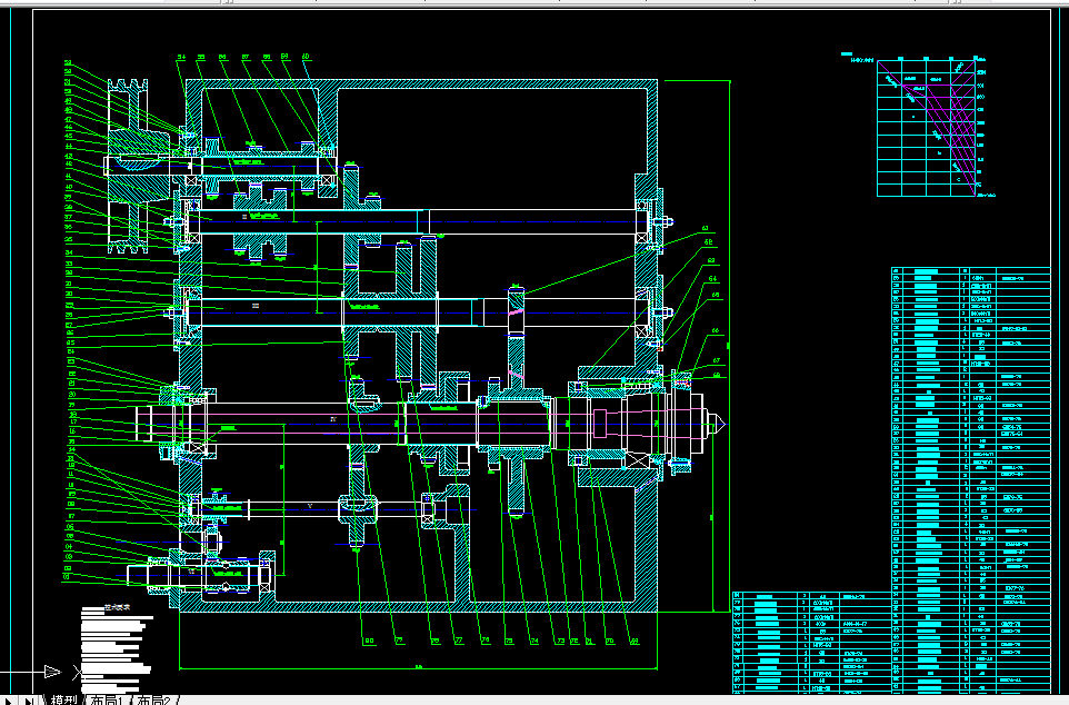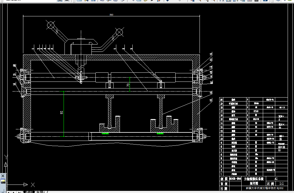 设计主轴变速箱的结构包括传动件(传动轴,轴承,带轮,离合器和制动器等),主轴组件,操纵机构,润滑密封系统和箱体及其联接件的结构设计与布置,用一张展开图和若干张横截面图表示。课程设计限于时间,一般只画展开图及一或两个截面图。