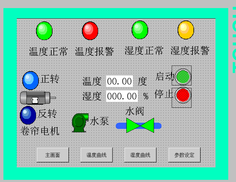 度传感器检测大棚里的湿度,将湿度转化成4-20MA的电信号再经由模拟量输入