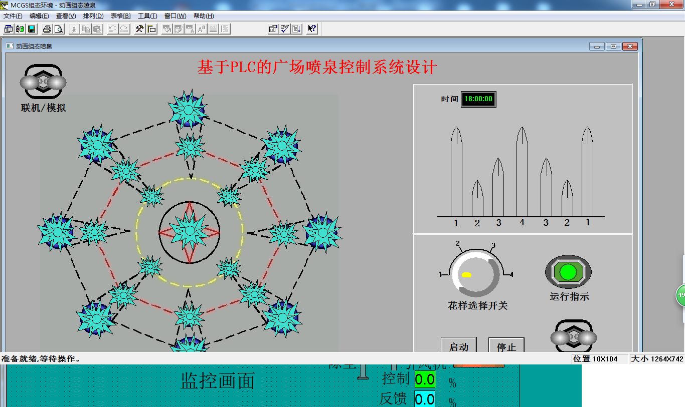 (5) 通过组态模拟显示喷泉各工作模式。