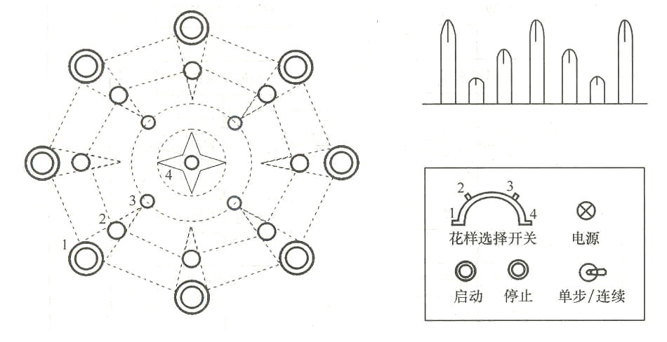 (2) 喷泉的工作方式由花样选择开关和单步、连续开关决定。