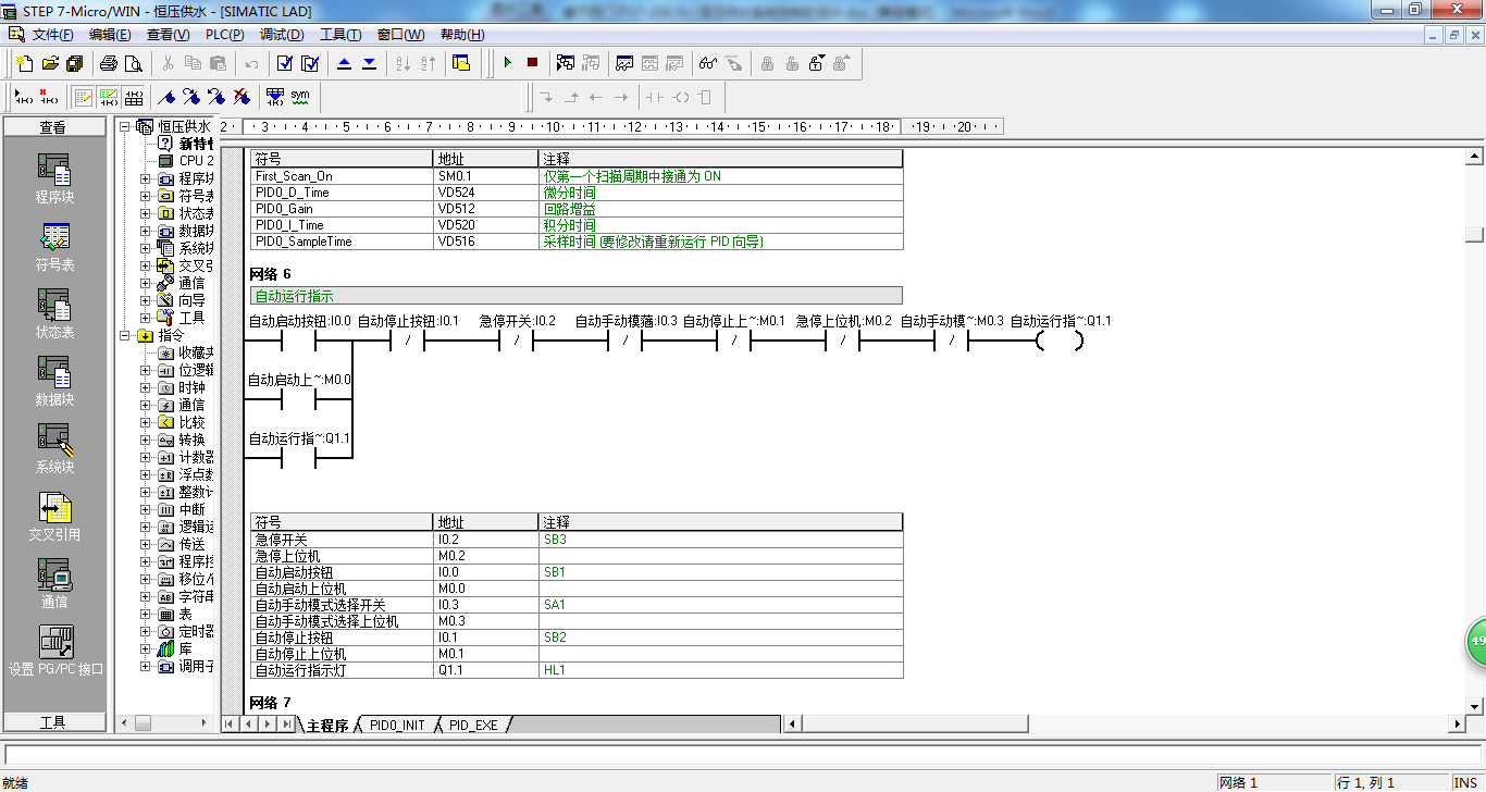 本设计中有3个贮水池,3台水泵,采用部分流量调节方法,即3台水泵中只有1台水泵在变频器控制下作变速运行,其余水泵做恒速运行。PLC根据管网压力自动控制各个水泵之间切换,并根据压力检测值和给定值之间偏差进行PID运算,输出给变频器控制其输出频率,调节流量,使供水管网压力恒定。各水泵切换遵循先起先停、先停先起原则。