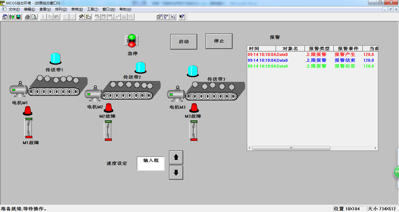 连接一个变频器,共需要3个变频器,为了实现变频电机之间的速度同步要求,