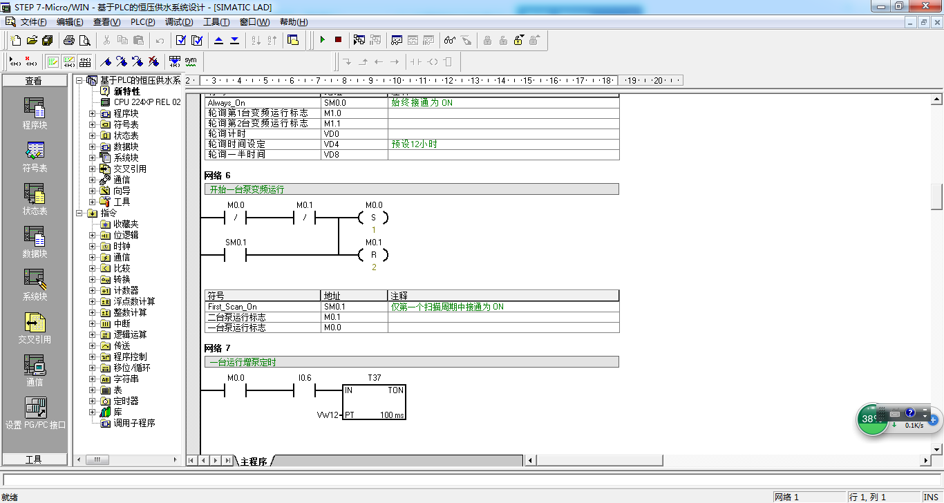 系统有自动和手动控制模式,手动方式通过外部的按钮,单独启动、停止各个泵。自动模式通过编程方式,根据管网压力,控制变频器,自动增泵减泵运行