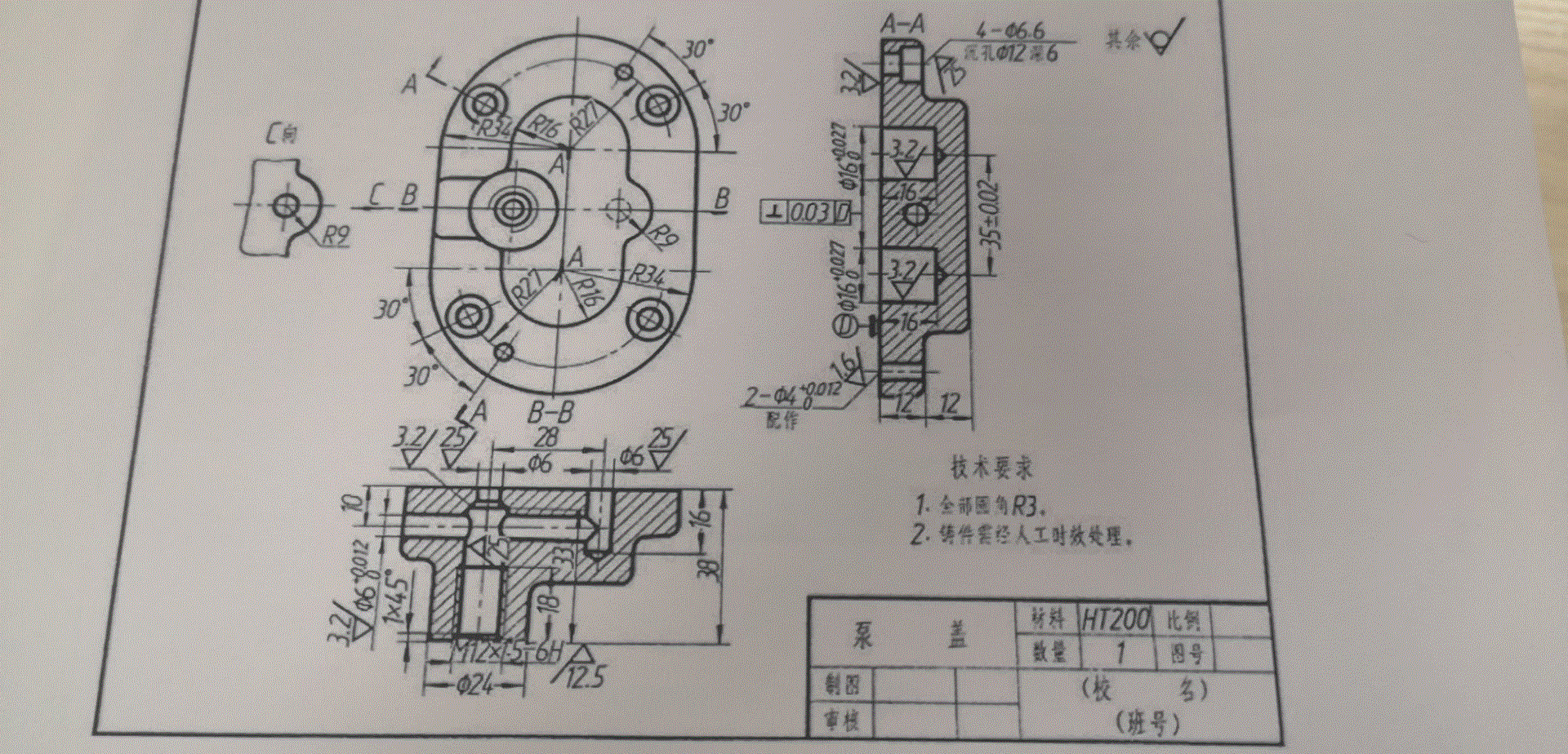JJ423-泵盖工艺规程及钻M12螺纹孔夹具设计[中心距35] 下载积分:50 资料编号: JJ423