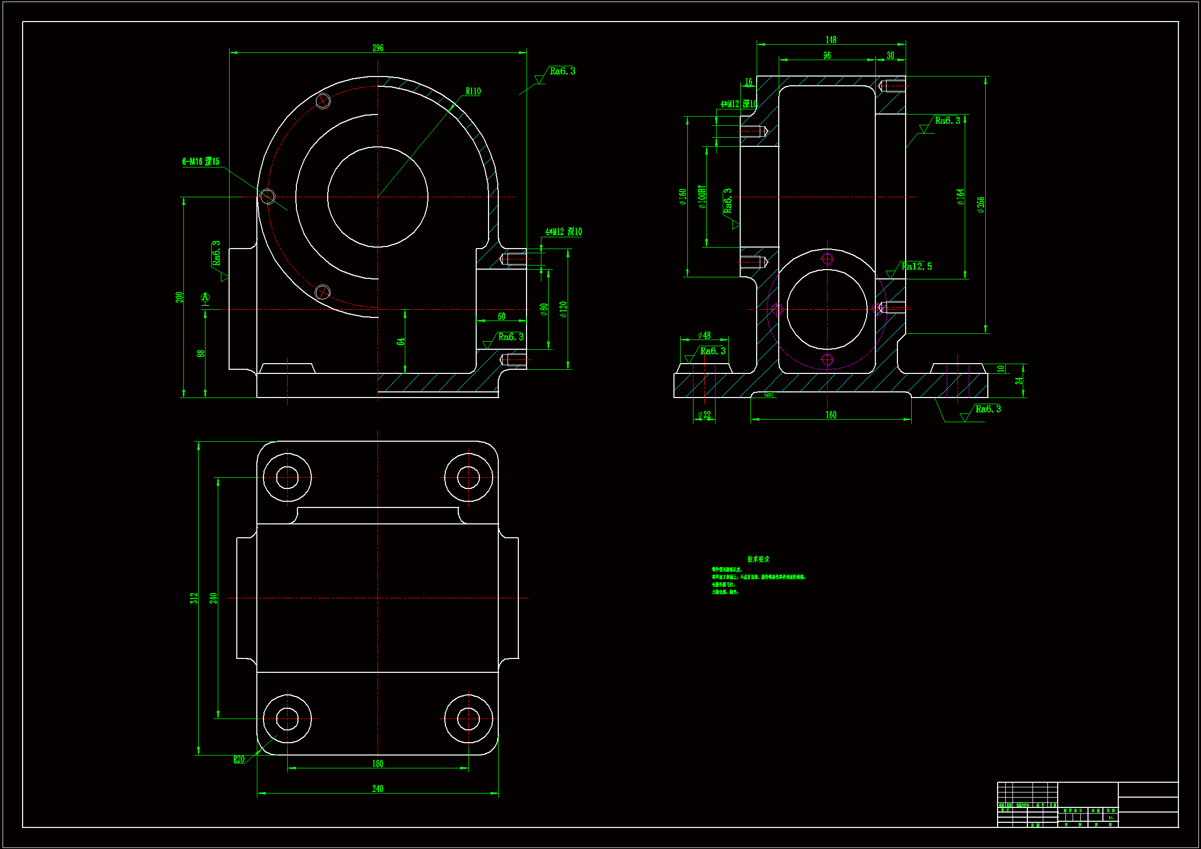 对大批生产的箱体进行了工艺规程的制订和专用夹具的设计。工艺方案采用了“一面两孔”的定位方式,将加工过程划分为粗加工。并按照工序集中安排其加工顺序,编写工序卡,主要选择了专用机床和工装。采用AutoCAD对钻6-M16的螺纹孔和镗Φ164孔的两道工序专用夹具设计绘制二维装配图。镗Φ164孔专用夹具采用了A型定位销和B型定位销、镗套、镗模,压板夹紧工件、并设计了单个螺旋夹紧机构;钻6-M16螺纹孔的专用夹具采用了A型定位销和B型定位销、压板夹紧工件、快换钻套、并设计了铰链钻模板。