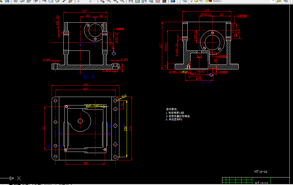 减速器箱体零件的工艺规程及其加工夹具设计是包括零件加工的工艺设计、工序设计以及专用夹具的设计三部分。在工艺设计中要首先对零件进行分析,了解零件的工艺再设计出毛坯的结构,并选择好零件的加工基准,设计出零件的工艺路线;接着对零件各个工步的工序进行尺寸计算,关键是决定出各个工序的工艺装备及切削用量;然后进行专用夹具的设计,选择设计出夹具的各个组成部件,如定位元件、夹紧元件、引导元件、夹具体与机床的连接部件以及其它部件;计算出夹具定位时产生的定位误差,分析夹具结构的合理性与不足之处,并在以后设计中注意改进。