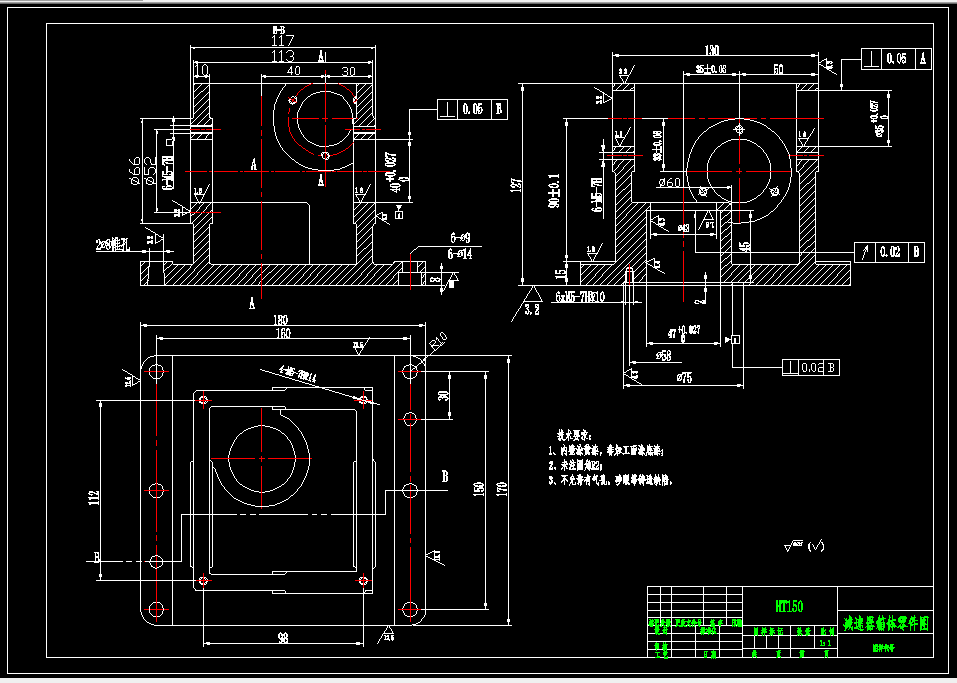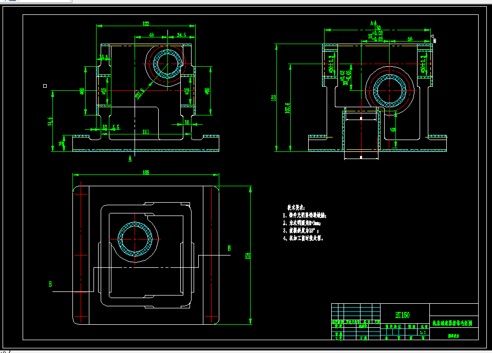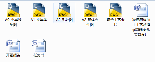 机床减速箱体加工工艺规程及其侧壁φ35的轴承孔的夹具设计,是包括零件加工的工艺设计、工序设计以及专用夹具的设计三部分。在工艺设计中要首先对零件进行分析,了解零件的工艺再设计出毛坯的结构,并选择好零件的加工基准,设计出零件的工艺路线;接着对零件各个工步的工序进行尺寸计算,关键是决定出各个工序的工艺装备及切削用量;然后进行专用夹具的设计,首先选择设计出夹具的各个组成部件,如定位元件、夹紧元件、引导元件、夹具体与机床的连接部件以及其它部件;然后计算出夹具定位时产生的定位误差,分析夹具结构的合理性与不足之处,并在以后设计中注意改进。