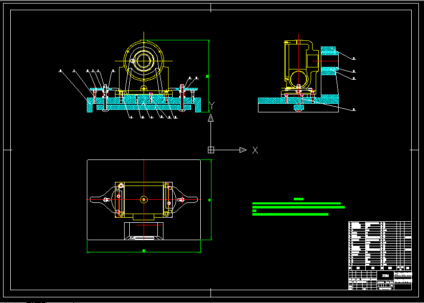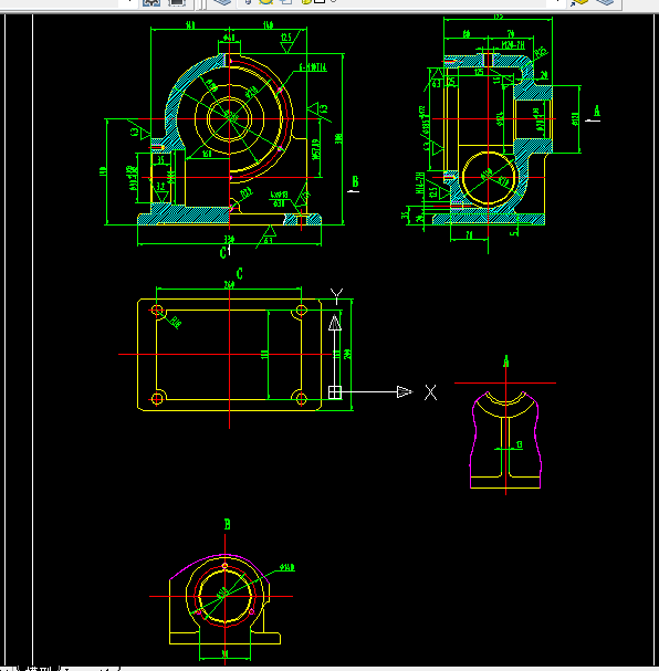 涡轮减速器箱体加工工艺规程及镗孔夹具设计是包括零件加工的工艺设计、工序设计以及专用夹具的设计三部分。在工艺设计中要首先对零件进行分析,了解零件的工艺再设计出毛坯的结构,并选择好零件的加工基准,设计出零件的工艺路线;接着对零件各个工步的工序进行尺寸计算,关键是决定出各个工序的工艺装备及切削用量;然后进行专用夹具的设计,选择设计出夹具的各个组成部件,如定位元件、夹紧元件、引导元件、夹具体与机床的连接部件以及其它部件;计算出夹具定位时产生的定位误差,分析夹具结构的合理性与不足之处,并在以后设计中注意改进。