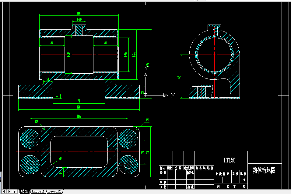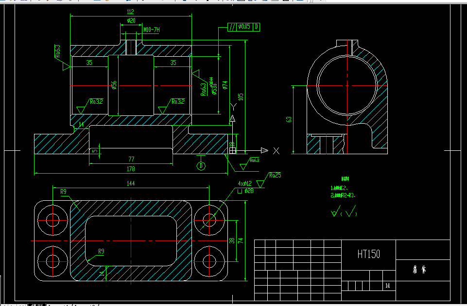 箱体零件的工艺规程及其钻箱体4-Φ12沉孔Φ28的工装夹具设计是包括零件加工的工艺设计、工序设计以及专用夹具的设计三部分。在工艺设计中要首先对零件进行分析,了解零件的工艺再设计出毛坯的结构,并选择好零件的加工基准,设计出零件的工艺路线;接着对零件各个工步的工序进行尺寸计算,关键是决定出各个工序的工艺装备及切削用量;然后进行专用夹具的设计,选择设计出夹具的各个组成部件,如定位元件、夹紧元件、引导元件、夹具体与机床的连接部件以及其它部件;计算出夹具定位时产生的定位误差,分析夹具结构的合理性与不足之处,并在以后设计中注意改进。