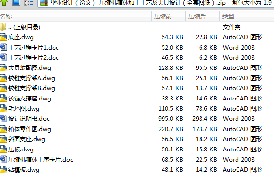 本次设计的是压缩机箱体加工工艺以及夹具的设计,压缩机主要作用是把低压冷媒汽体吸进压缩成高压汽体----冷却循环,使部分动能转化为压力能从而提高汽体的压力。压缩机箱体则是承载这个压力和连接各零部件,因此要求箱体能够承受压力,以及箱体与其他零部件的密封性,在编制加工工艺时,要考虑到各个接触面的各项精度以及形状与位置公差等。