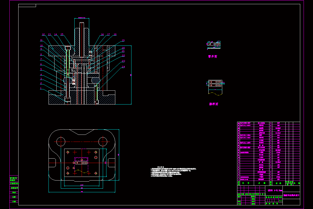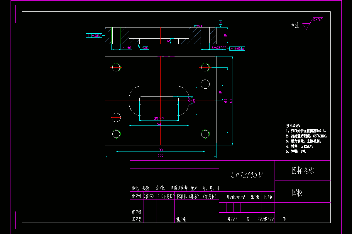 分析本次设计的工件为垫板,该工件为垫片类的平直型,没有其他的特殊结构比如弯曲,拉深等,需要使用到的工序只有落料和冲孔两个。然后需要对工件结构性进行分析,确定出适合的模架类型,比如复合模或级进模等,最终设计采用了落料冲孔复合模。接着进行排样图的设计,排样图的设计是冲压模具设计的基石,通过对排样图的设计,决定了该料带是前后送料还是左右送料最终决定模架的形式,确定了采用后侧导柱模架的设计方案。然后对工件的冲压力进行了详细的计算,并且选择出了合适的压力机,最后通过对刃口尺寸进行计算,设计出了模具的凸模,凹模,凸凹模,以及卸料板固定板等等,最终对模具整体进行整合,利用cad二维软件对模具整体装配图以及零件图进行了绘制,整理出说明书,并且进行了最后总结。