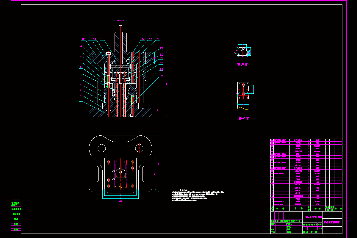 关键词:冲孔;落料;压板;模架;排样图;复合模