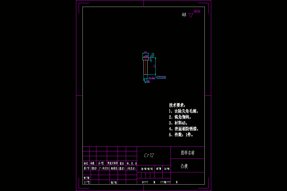 本次设计的创新点在于分析工件的工艺性,确定了采用倒装复合模的模具形式,能够使冲裁废料直接通过下模排除模具,利用打料杆,打料板以及推杆组成的推件机构,对成品工件进行推出,模具的结构形式简单,并且通过对模具锐角尖角的良好处理,避免了模具薄钢,增强了模具结构的强度和刚度,保证了大批量的生产需求。