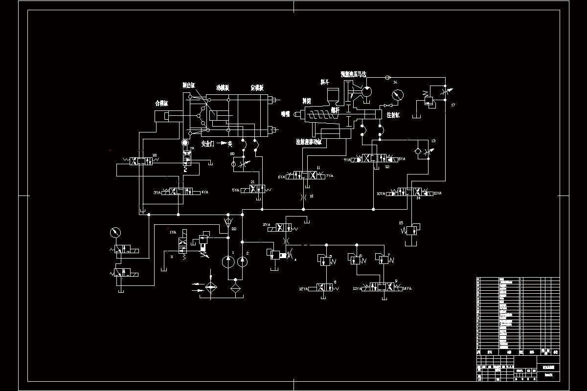 目前,塑料注射成型机已经是我国塑料工业中最关键的一种设备,随着注塑成型材料在各行业中应用日益广泛,现在我们所使用的塑料注射成型机,会在进行高压注射时使用模具因分离裂缝而直接产生塑料溢边。针对此类问题,设计了这种注塑机,它是一种液压-机械增力合模的机构,为了使模具锁紧更加可靠,同时减小了合模缸尺寸。注塑机的液压传动系统利用行程开关自动控制实现先后顺序运动,通过电气行程开关保证其运动顺序可靠。根据注塑机的工艺特点,注塑机在一个工作周期内对于流量和温度进行各个阶段的控制。其中每个阶段都会要求供油流量和温度的变化各不相同,而且往往都是有一定的温度变化,采用双泵供油与节流阀不同的组合方式来自动调节供油流量;由多台远程操控的远程调压阀进行并联运转来自动控制压力,以便满足工艺要求。但在这种情况下,系统所用的元件数量较多,能量利用不够合理,系统发热较大,为此专门设计了冷却系统。