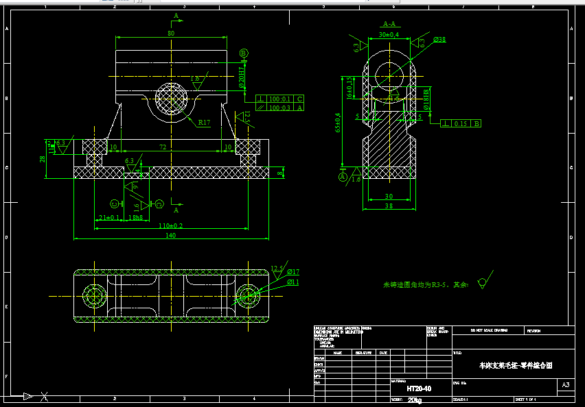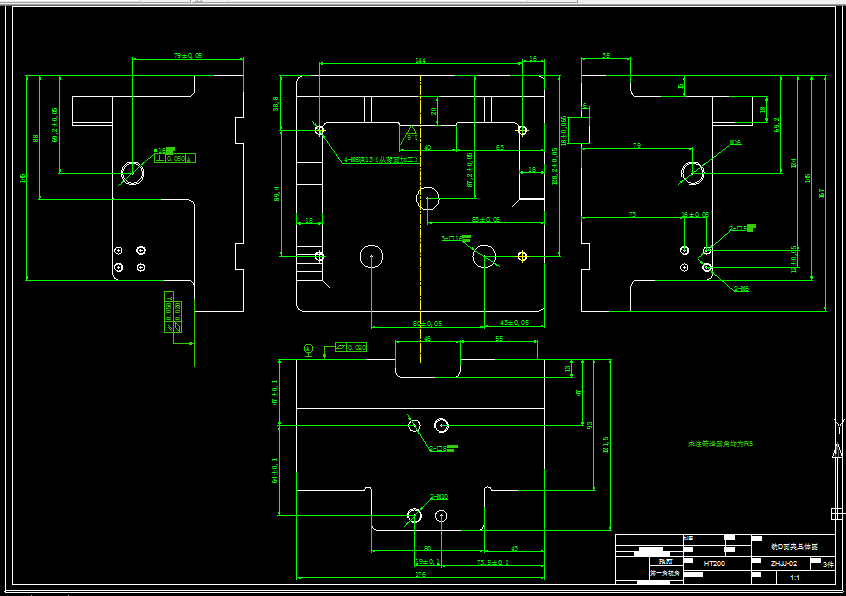 设计的重点是夹具的设计,由于工件上的孔系都要以底面作为基准加工,故首先得加工出底面,为保证孔的位置和加工准确性我们一定要在加工底面的时间通过画线找出底面的加工余量。这样就可以更好的保证孔系的位置和加工精度。因此工序一中的专用夹具的制造显得尤为重,本次夹具设计中对工序一中铣削夹具进行了设计,提供了一套可使用于中批量生产的,经济性和实用性均良好的夹具设计方案。
